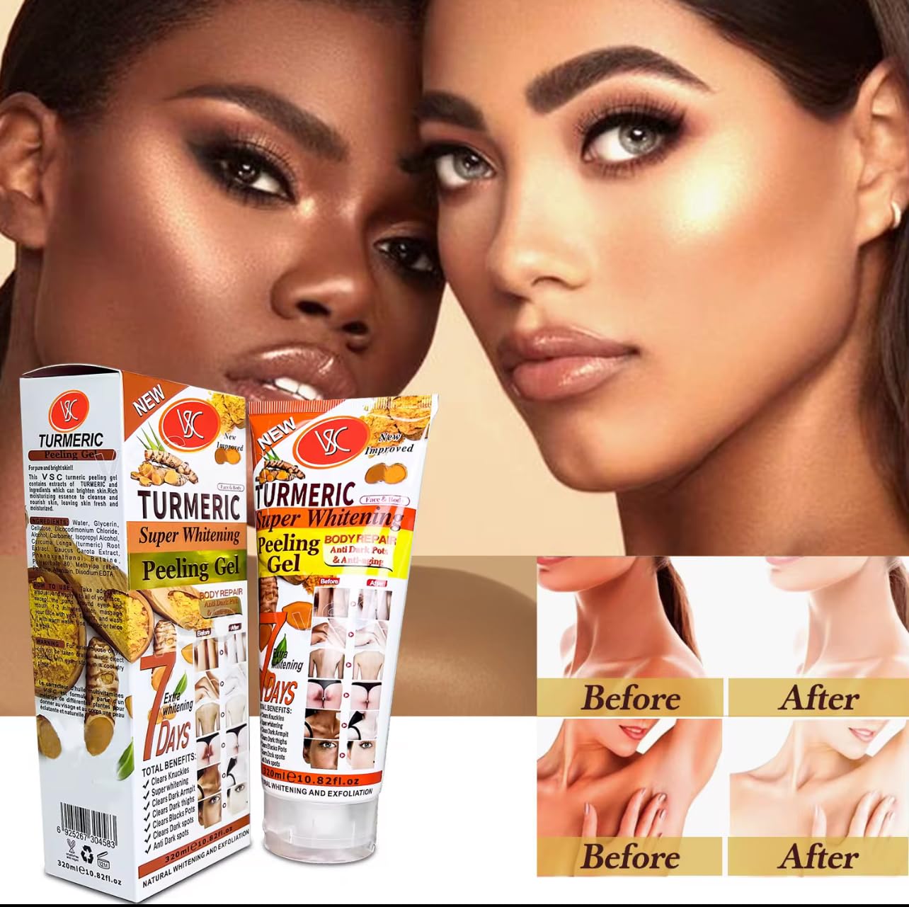 - NATURAL WHITENING: Turmeric-based peeling gel formulated for face and body exfoliation, with targeted brightening effects visible in 7 days